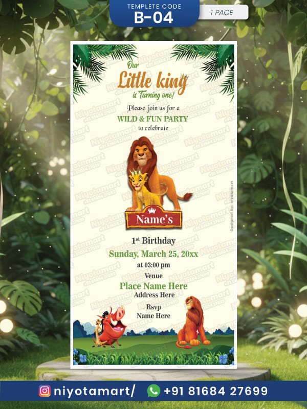Animal Jungle Theme Birthday Invitation | Fun Digital Kids Party E-Card | B-04