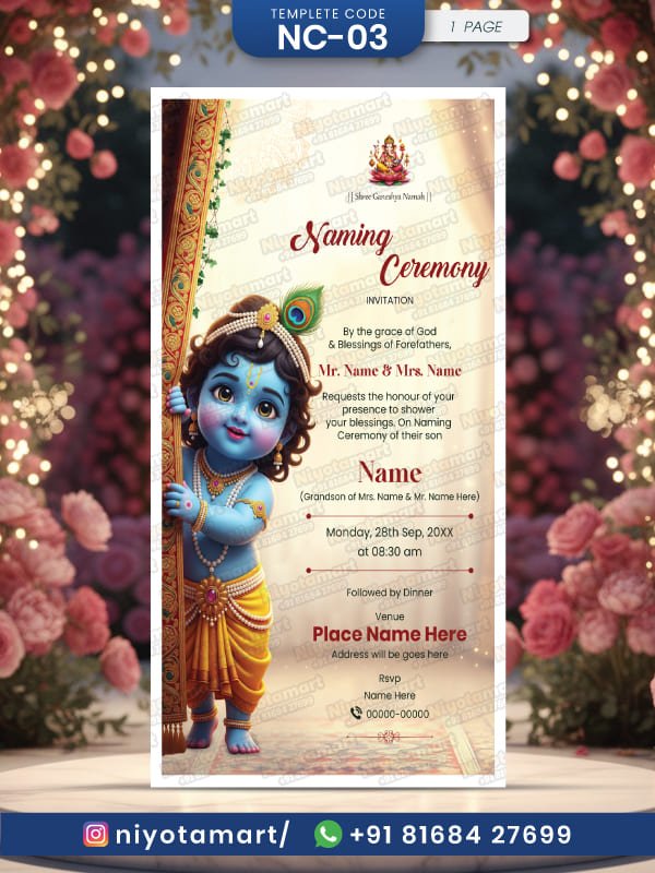 Baby Krishna Naming Ceremony Invitation | Hindu Divine Theme |NC-03