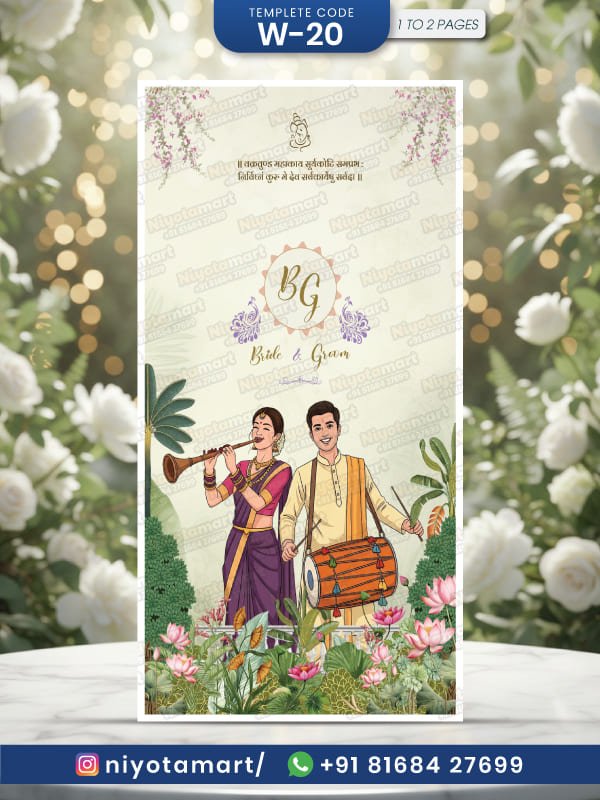 Cultural Indian Wedding Invitation Digital Card – Bride Groom Theme | W-20