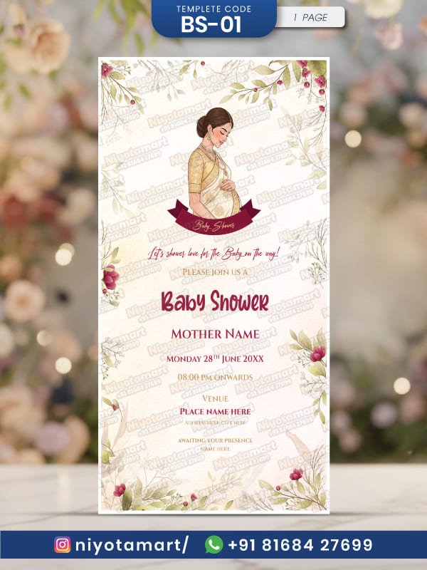 Floral Baby Shower Invitation | Indian Maternity Illustration Theme |BS-01