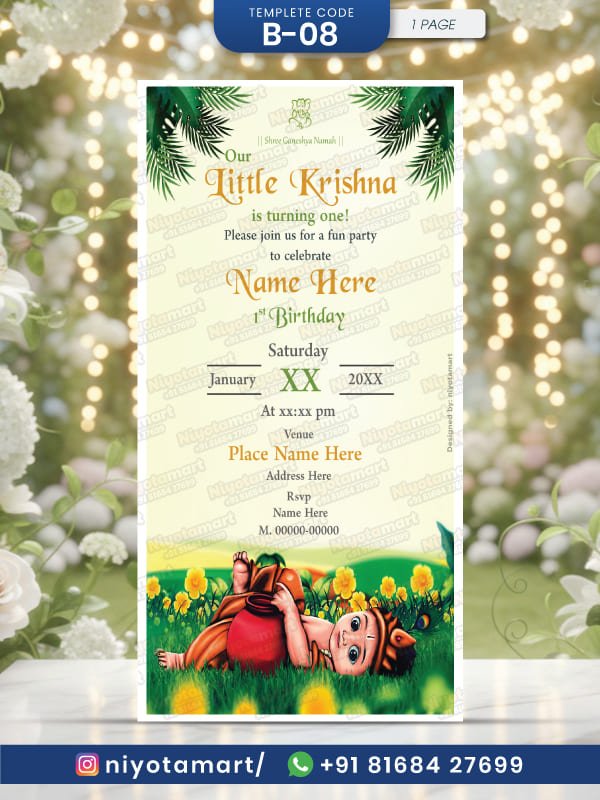 Krishna Birthday Invitation Card | Little Krishna Theme for Kids’ Celebration | B-08