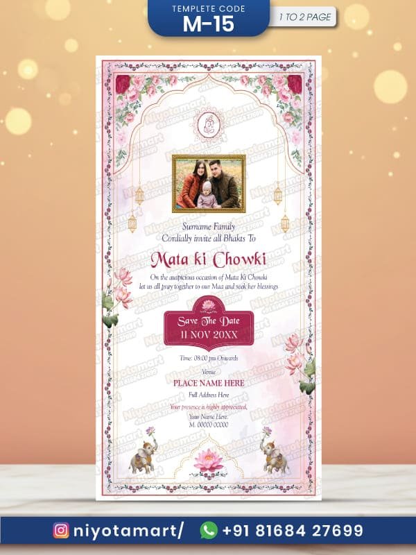 Mata Ki Chowki Digital Invitation Card | Floral Maa Durga Theme | M-15
