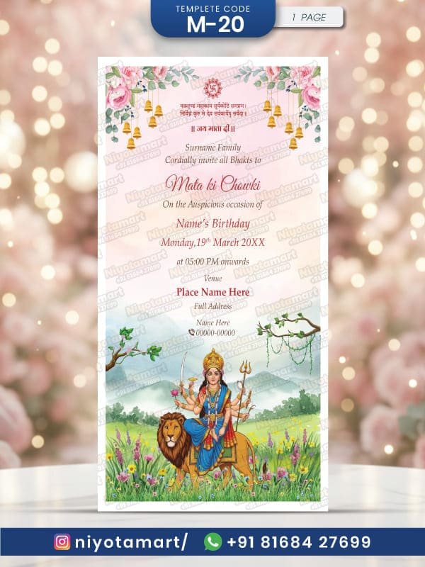 Beautiful Mata Ki Chowki Invitation Card | Spiritual Durga Maa Bhakti Card |M-10