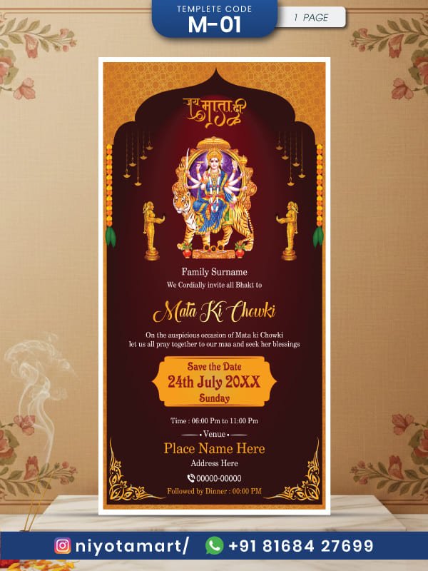 Beautiful Mata Ki Chowki Invitation Card | Spiritual Durga Maa Bhakti Card |M-10