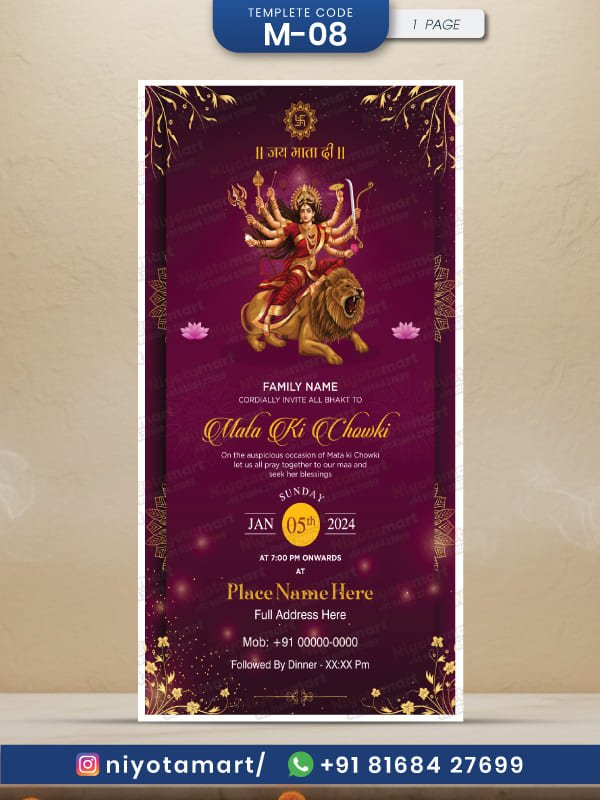 Online Mata ki Chowki Invitation | Mata Ka Jagran Invitation Template | M-12