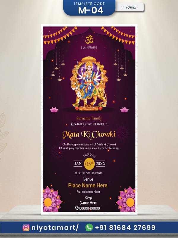 Online Mata ki Chowki Invitation | Mata Ka Jagran Invitation Template | M-12