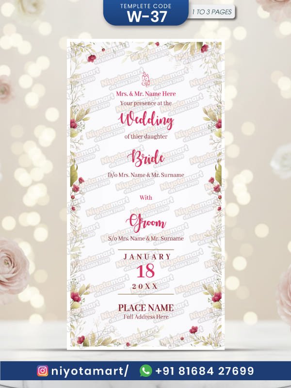 Minimal Floral Wedding Invitation | Digital Wedding Card | W-37