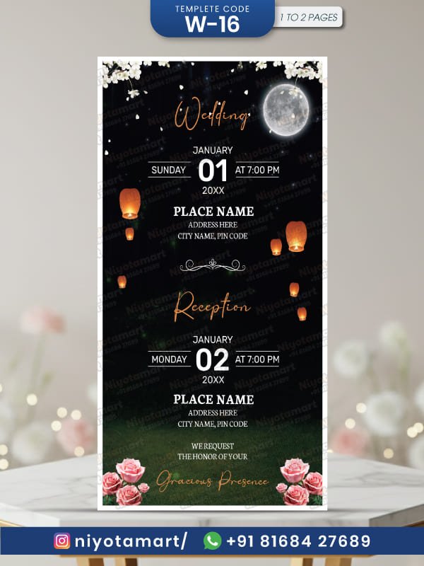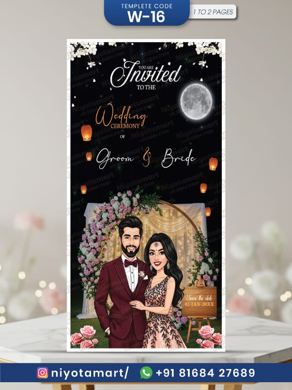 Moonlight Wedding Invitation Card | Romantic Night Wedding E-Invite | W-16