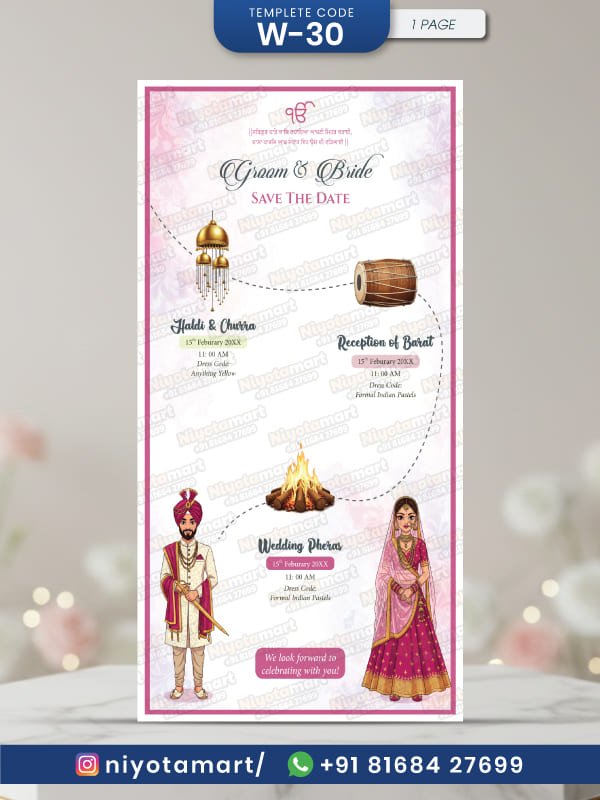 Punjabi Wedding Save The Date Invitation | Haldi Churra & Wedding Phere Card | W-30