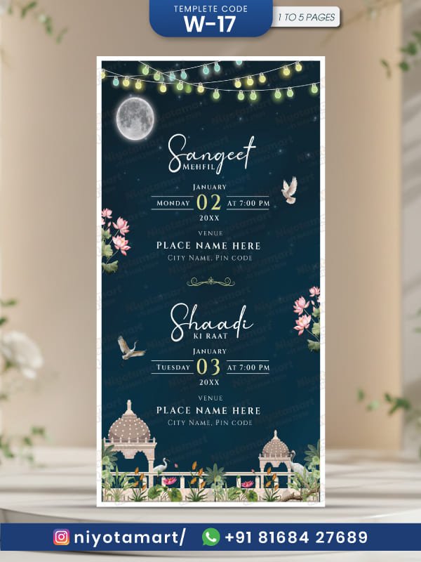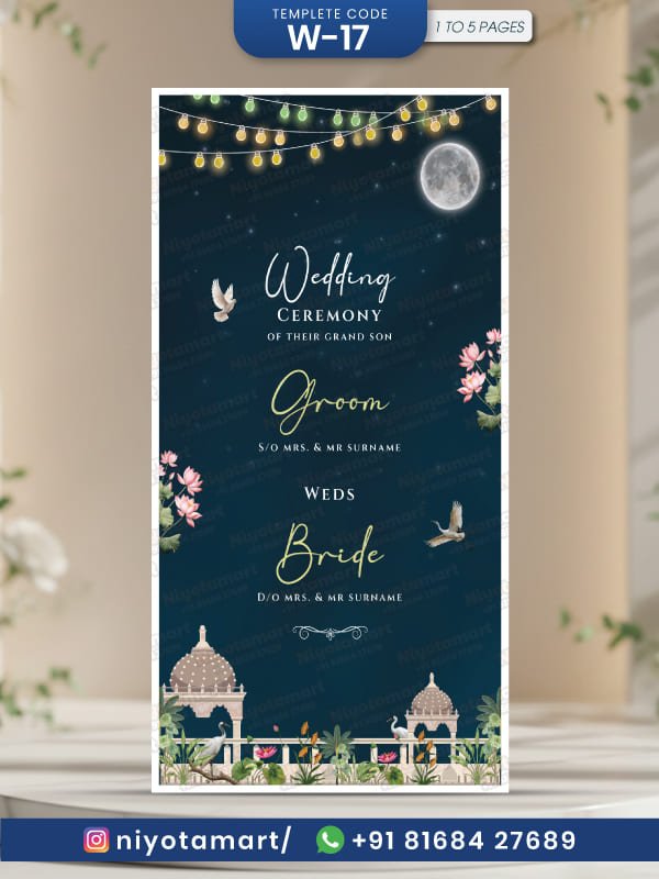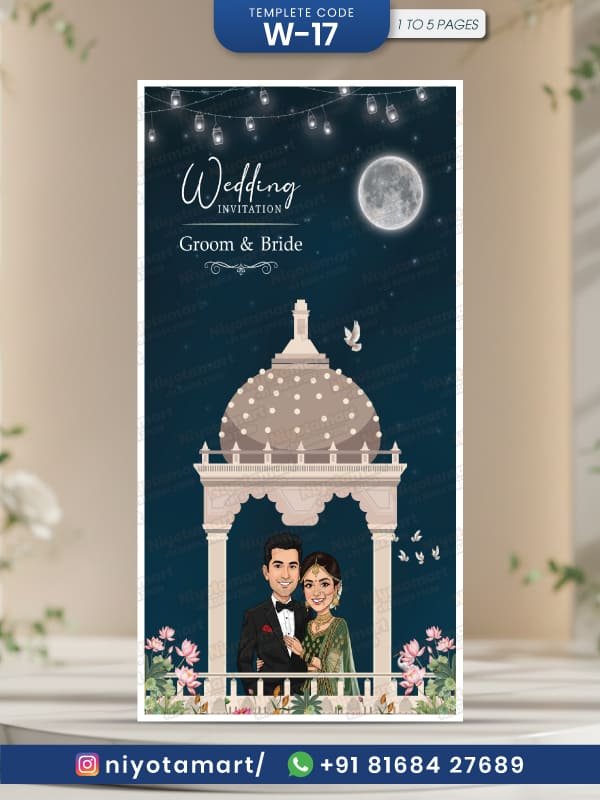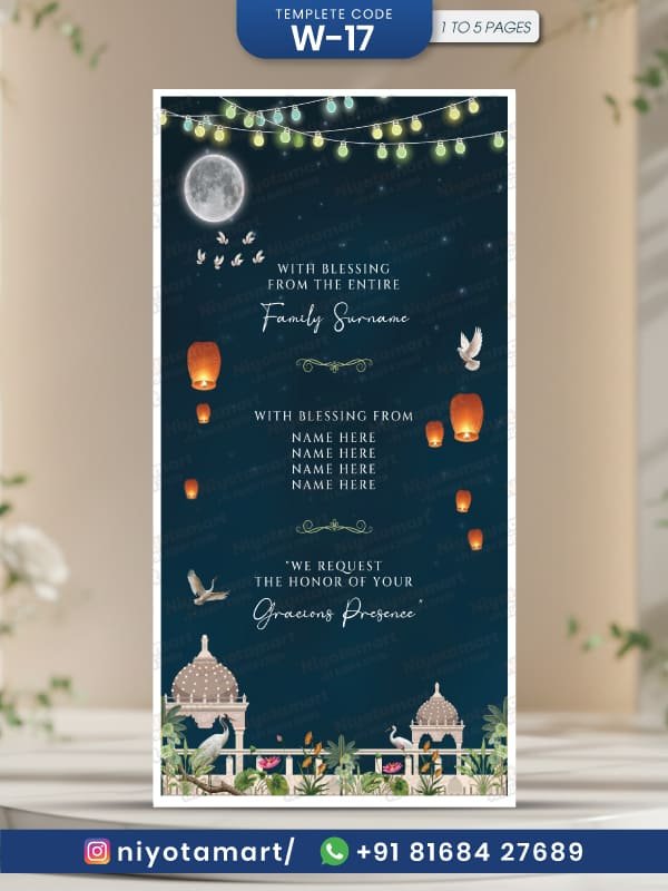 Royal Wedding Invitation Card | Elegant Night Theme Wedding E-Invite| W-17