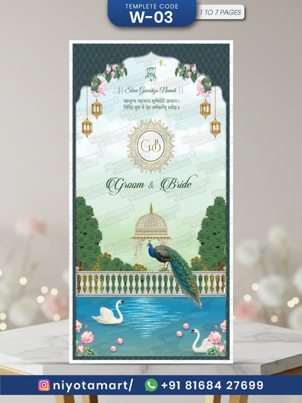 Royal Peacock Palace Wedding Invitation | Hindu wedding Invitation | W-03