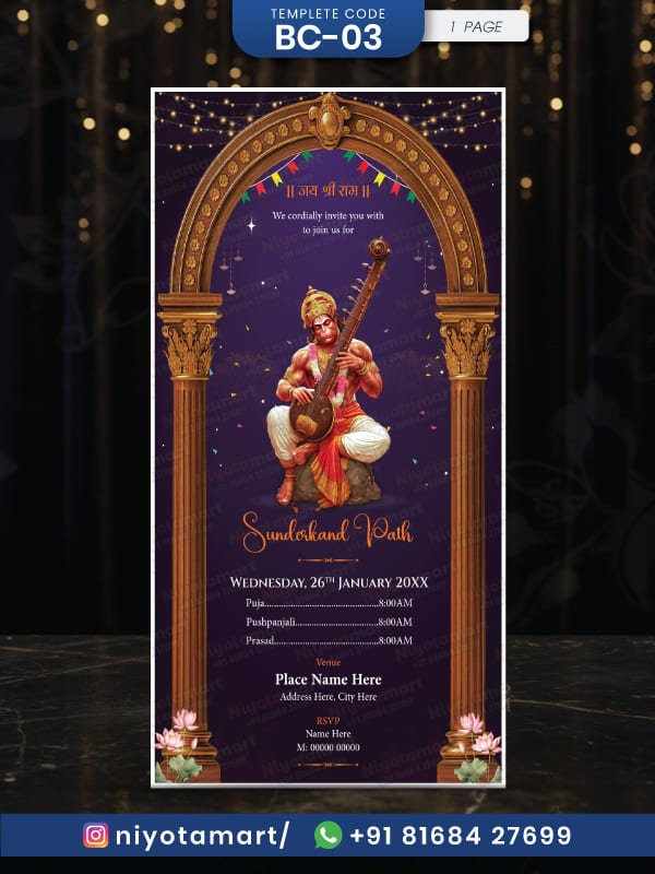 Sundarkand Path Digital Invitation Card | Lord Hanuman Theme | BC-01