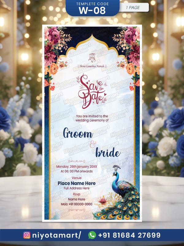 Royal Peacock Save the Date Wedding Invitation | Hindu Wedding | W-08