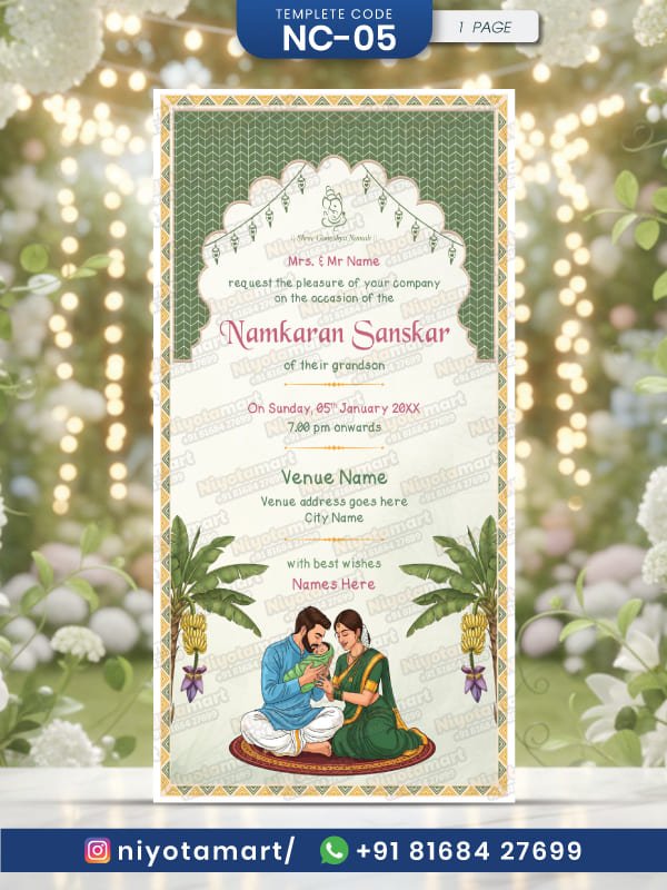 Traditional Green Namkaran Sanskar Digital Invitation | NC-05
