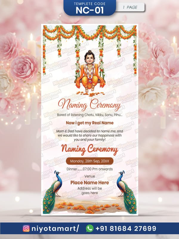 Traditional Hindu Naming Ceremony Invitation | Baby Krishna Theme |NC-01
